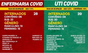 Junho terminou com 67 pessoas internadas com covid-19 em Campo Mourão. São 39 na UTI e 28 na enfermaria. Dezenove mourãoenses estão na UTI e 14 na enfermaria. Taxa de ocupação: 115% na enfermaria, 125% na UTI SUS e 90% na UTI convênios.