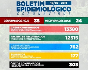 Mais 35 casos de covid-19 foram confirmados neste sábado em Campo Mourão. Número abaixo da média dos últimos dias, mas desta vez houve menos recuperados (24). Assim, os mourãoenses com o vírus ativo subiram um pouco (762). Não houve mortes. Na ala covid dos hospitais há 53 internações. Taxa de ocupação: 84% na enfermaria, 125% na UTI SUS e 30% na UTI convênios.