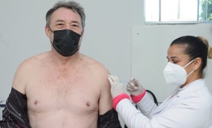 Wilson Tureck, prefeito de Luiziana, ao receber nesta segunda-feira a segunda dose da vacina contra a covid-19. "Pedimos encarecidamente que os nossos munícipes venham ao ponto de vacinação e tomem a sua dose", completou. Ele tem 64 anos e foi imunizado com a Astrazeneca.