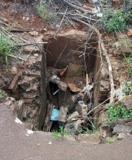 "O que sobrou de um bueiro: seus "restos mortais" dentro da sua própria "cova". Na rua João Pessa Júnior, esquina com a Jeremias Cilião de Araújo, no jardim Albuquerque".