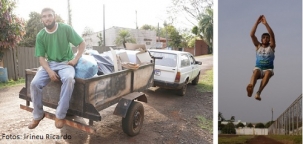 Angel Inocêncio da Silva, 20, faz parte da equipe de atletismo de Campo Mourão. Compete no salto em distância e já conquistou medalhas em campeonatos estadual e brasileiro. Representou o Brasil em sul-americano sub-18. Quando não está nas pistas, no entanto, é visto pelas ruas fazendo coleta de recicláveis. É o seu ganha pão. Angel mora na Vila Guarujá, onde faz a separação dos materiais.