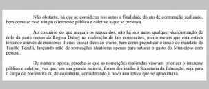 Para a juíza, as nomeações foram legais e não se comprovou dolo por parte da então prefeita.