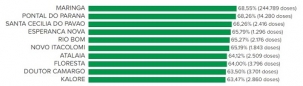 20) Engenheiro Beltrão 40,31% (5.605 doses)