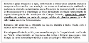 O Estado e a prefeitura devem manter equipes médicas completas em plantões de urgência e emergência em Campo Mourão.