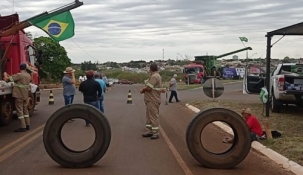O protesto do caminhoneiros está mantendo bloqueio na PR-180, em Goioerê. Fica no trevo que dá acesso a Quarto Centenário. Pela manhã só cargas perecíveis, carros de emergência e veiculos leves eram liberados. À tarde carros pequenos começaram a ser barrados por meia hora.