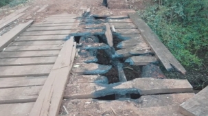 Prefeitura de Barbosa Ferraz, em postagem em redes sociais sobre como ficou a ponte sobre o rio Ribeirão Lino, no bairro São Joaquim, "parcialmente queimada por um ato criminoso"; nesta sexta-feira.
