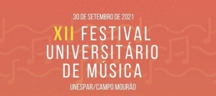 Ficam abertas até quarta-feira as inscrições para o 12.o Festival Universitário de Música da Unespar/Campo Mourão. O evento será no próximo dia 30, de forma remota e será aberto a toda a comunidade acadêmica. Desta vez o tema é livre. Haverá premiação para interpretação de MPB, interpretação instrumental, composição própria e composição própria instrumental. A inscrição é de graça.