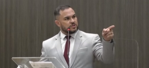 Márcio Berbet, vereador em Campo Mourão, sobre a situação da "fiozeira" pelos postes da cidade, em discurso na sessão desta segunda-feira, quando criticou a Copel, dizendo que a empresa tem altos lucros e poderia melhorar a situação.
