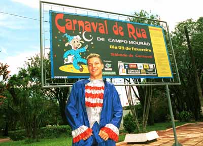As aparências enganam. Uma das provas desse velho ditado está nesta foto. André Luiz Staniszewski não parece, mas é o rei momo de Campo Mourão. Ele não parece porque não tem os tradicionais quilinhos a mais (e põe a mais nisso!) que os reis momos costumam ter. É um rei momo magro. Magérrimo para os padrões tradicionais. Deve ser a crise que chegou ao reino...