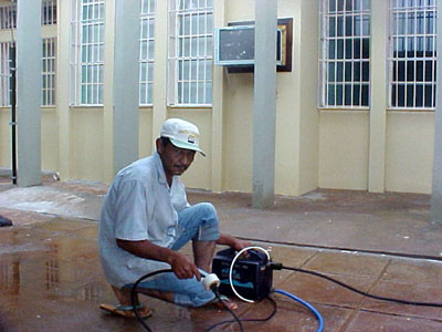 Esse aí é Ernesto Moreira Matos num clique feito pela reportagem da “Folha de Londrina”. Ele está trabalhando na limpeza do pátio do Fórum de Barbosa Ferraz. Nada demais se não fosse um detalhezinho: Ernesto é um dos 15 presos da cadeia de Barbosa Ferraz. Ele foi preso no ano passado acusado de matar um homem com golpes de facão. Foi preso, mas fica solto. Vai até trabalhar no Fórum. Tudo sem vigilância e sem escolta. Ué, não tem liberdade assistida? Em Barbosa Ferraz é liberdade desassistida mesmo...