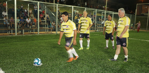 Foi inaugurada nesta sexta-feira à noite a mini-arena multiuso de Campina da Lagoa. Fica no Lago Municipal. O investimento é de cerca de R$ 300 mil. O projeto é da Secretaria de Estado de Esporte e Turismo e, por isso mesmo, o secretário Douglas Fabrício participou. Jogou bola com o prefeito Milton Luiz Alves e tudo, Só que, cá pra nós: quem deu show em campo foi o padre Reinaldo Andrade (foto). Foram dele, inclusive, os dois gols do time.