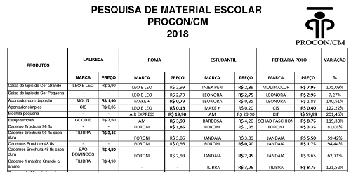 Já comprou material escolar? Não. Então fique sabendo que o Procon de Campo Mourão preparou uma pesquisa de preços com 81 itens. O listão foi enviado a cinco empresas do ramo e quatro responderam. A relação completa está no site da prefeitura - www.campomourao.atende.net .