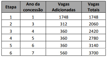 A segunda etapa entra no terceiro ano da concessão, com mais 312 vagas.
