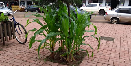 Ao descrever o Brasil ao rei d. Manuel, Pero Vaz de Caminha disse que por aqui "em se plantando tudo dá". Em Campo Mourão nem precisa plantar. Ou foi alguém que plantou esse milharal no calçadão?...