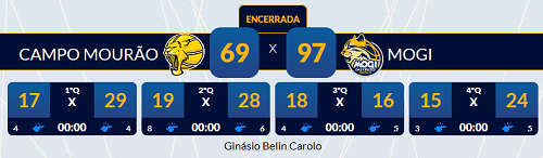 No primeiro tempo Mogi já abriu 21 pontos (57 a 36).