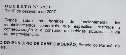 Muita gente nem lembra, mas Campo Mourão tem "lei seca" em vigor.