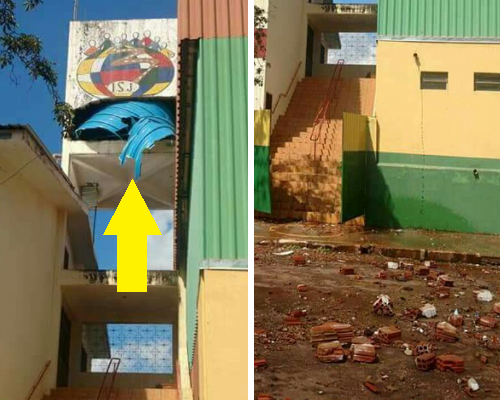 Susto neste domingo em Peabiru. A caixa de água da escola São José, no centro da cidade, estourou e destruiu a caixa de concreto, jogando água e tijolos até o outro lado da rua. Por sorte ninguém foi atingido. Como era domingo não havia crianças no local.