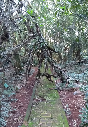 "Tinha uma árvore na estrada de tijolos do Parque do Lago".