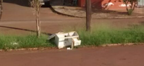 Lixo jogado no canteiro central da av. Comendador Norberto Marcondes, em frente ao estádio Municipal. Sérgio