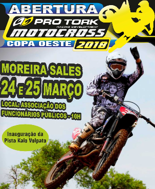 Moreira Sales - Acontece neste fim de semana etapa da Copa Oeste de Motocross. O evento vai marcar a inauguração da pista construída pela prefeitura através de parceria com a Associação dos Funcionários Públicos. Os treinos começam no sábado.