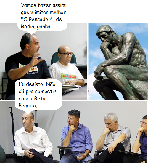 Os cliques são desta quinta-feira, quando Sindiscam e prefeitura se reuniram para discutir a data-base. Acima, Dione Clei Valério e Gilberto Santana de Alencar, do sindicato. Abaixo, Robevani Pierin do Prado, Ricardo Borges, Beto Pequito e Aldecir Roberto da Silva, da prefeitura.