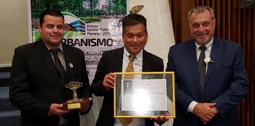 Boca Santa já divulgou as prefeituras da região premiada no 7.o Prêmio Gestor Público Paraná. Só faltou dizer que Ubiratã foi premiada em dois projetos. Olha aí o prefeito Baco Duarte com assessores mostrando as duas premiações. Uma foi pelo projeto "Ubiratã: Cantinho feliz do Brasil entre os lados do Paraná!" e outro por "Uma cidade integrada pelo esporte".