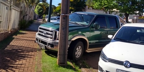 Com o estacionamento diagonal no centro de Campo Mourão, as camionetonas não têm saída: ou ficam com a traseira no meio da rua ou com a dianteira em cima da calçada. Se correr o bicho pega, se ficar o bicho come...