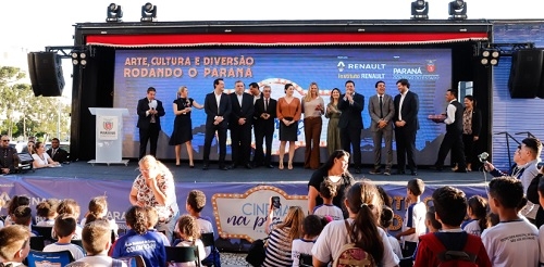 O governo do Estado e a Renault lançaram nesta quarta-feira, no Palácio Iguaçu, o programa itinerante Cinema na Praça.