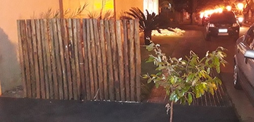"Av. Jorge Walter, esquina com rua São José, próximo ao Santuário. Pedestres são obrigados a desviar de cercadinho na calçada. E se isso virar moda? E o direito dos caderantes?"