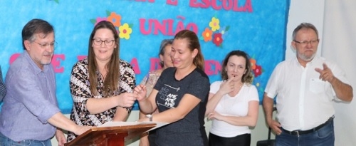 Ele esteve na prefeitura para receber a escritura do terreno.