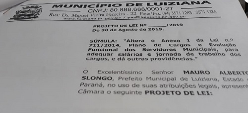 A prefeitura de Luiziana está propondo a redução de salários para concursos futuros.