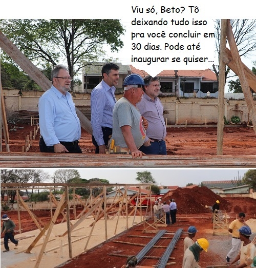 Os cliques são de sexta-feira, quando o prefeito Tauillo Tezelli visitou as obras da nova escola Gurilândia, que está ainda bem no início. O vice-prefeito Beto Voidelo acompanhou. Voidelo, aliás, assumirá a prefeitura no próximo dia 13, quando começa a licença de 30 dias de Tauillo para tratar de assuntos particulares.