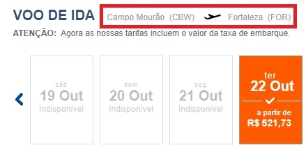 Mas calma, que nesse mesmo dia dá pra comprar passagem de Campo Mourão a Fortaleza por R$ 521,73.