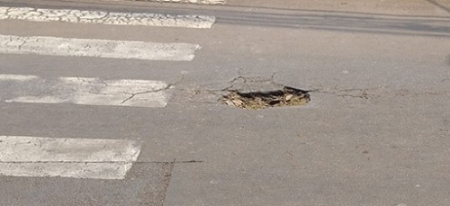 Olha os buracos voltando ao centro de Campo Mourão. Esse é na esquina da av. Manoel Mendes com a rua Harrison José Borges, a uma quadra da prefeitura.