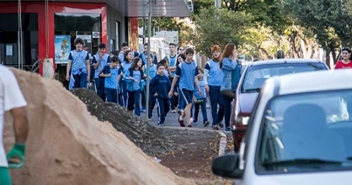 Alunos da escola Educare participaram durante a semana de passeio ciclístico e de caminhada por ruas próximas ao estabelecimento de ensino. Sentiram na pele o drama das calçadas de Campo Mourão, que nem sempre estão acessíveis para os pedestres.