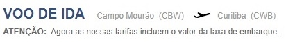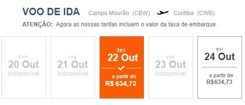 Já comprou a passagem para o voo entre Campo Mourão e Curitiba? Ainda tem, mas o preço deu uma subidinha. Para o voo inaugural, na próxima terça-feira, foi para R$ 634,73. É o mesmo valor para quinta-feira, dia 24. Para a semana seguinte cai para R$ 531. O avião é para nove passageiros e a viagem prevista para durar 90 minutos.