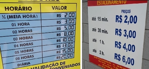 Num deles, na rua Brasil, além das vagas para os carros, há opcionais como banheiro e wi-fi.
