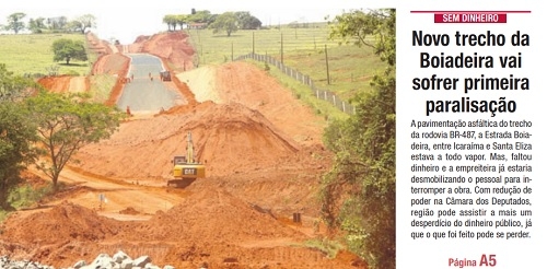 Por falta de repasses, a empreiteira dispensou funcionarios e está recolhendo as máquinas.