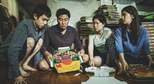 Toda a família de Ki-taek está desempregada, vivendo num porão sujo e apertado. Uma obra do acaso faz com que o filho adolescente da família comece a dar aulas de inglês à garota de uma família rica. Fascinados com a vida luxuosa destas pessoas, pai, mãe, filho e filha bolam um plano para se infiltrarem também na família burguesa, um a um. No entanto, os segredos e mentiras necessários à ascensão social custarão caro a todos.