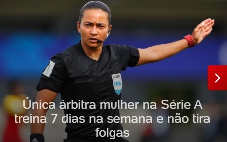 Olha quem saiu como maior destaque nesta sexta-feira no UOL, o maior portal de notícias do País. Sim, é a árbitra Edna Alves, de Goioerê, a única mulher a apitar a Série A do Brasileirão. A reportagem traz um longo perfil dela. Edna conta até que pagou o curso de arbitragem enchendo saquinhos de terra num viveiro de mudas.