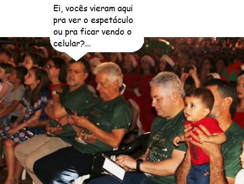 O clic é deste sábado, durante o espetaculo da Associação Sou Arte que marcou a chegada do Papai Noel a Campo Mourão. Os deputados Rubens Bueno e Douglas Fabrício não perderam a chance de dar uma olhadinha nas últimas da internet, observados pelo prefeito Tauillo Tezelli.