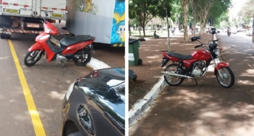 "Tem estacionamentos para motos regulamentados, mas estacionam no lugar dos carros. Isso às 13h20 desta sexta-feira, na av. Irmãos Pereira".