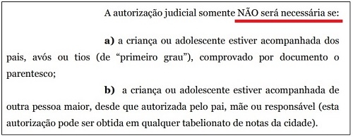 A nota lembra que mudou a lei que trata de viagens de crianças e adolescentes em território nacional.