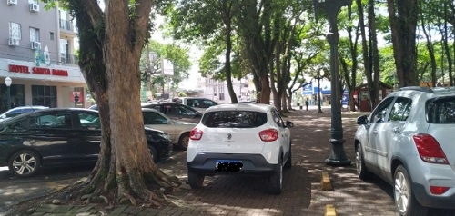 Carro estaciona sobre a calçada na rua Harrison José Borges, fundos da Catedral São José, neste domingo.