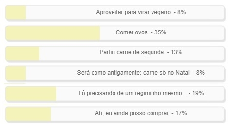 Venceu a alternativa "Comer ovos", com 35% dos votos.