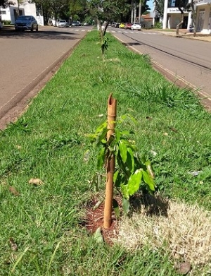 Os canteiros das avenidas de Campo Mourão estão ganhando novas árvores. A foto é na av. Goioerê. São ipês, oitis e canelas. Programa da prefeitura? Na-nani-nanã! O município até cede as mudas, mas a iniciativa foi do advogado Arno Ferrari, que banca a mão de obra. A meta era plantar três mil mudas, mas pode chegar a cinco mil.