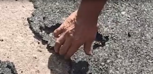 Vídeo postado em redes sociais mostra suposto recape se esfarelando e sendo retirado com as mãos em rua do Cohapar.
