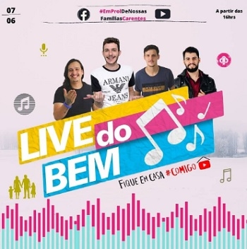 Vai ter "Live do bem" no próximo domingo (16h) em Campo Mourão. A promoção é de quatro amigos com o objetivo de ajudar famílias carentes em tempo de pandemia. O grupo já conseguiu mais de 50 patrocinadores e uma quantidade de cestas básicas para doações.