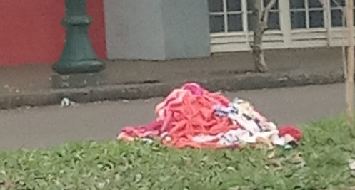 "Retalhos no canteiro da av. Guilherme de Paula Xavier, entre as ruas São José e Santa Cruz. Todos somos responsáveis em dar o destino correto ao nossos resíduos".