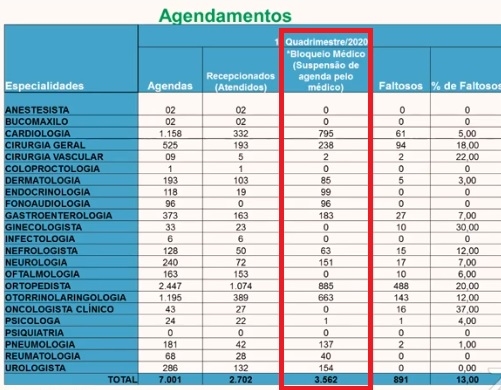 De cardiologia houve 795 e de otorrino 663 suspensões.